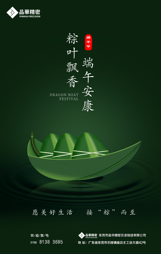 端午與春節、清明、中秋并稱為中國四大傳統節日,“端午佳節”此詞更早會出現于西晉的《風土記》: ”仲夏端午謂五月五日也,俗重此日也,與夏至同。”后因戰國時期的楚國詩人屈原在五月五日跳汨羅江自盡,人們亦將端午節作為紀念屈原的節日。在濃濃的粽香飄來之際,品華精密全體員工祝各位新老客戶崗位在即,萬事如意,端午安康!